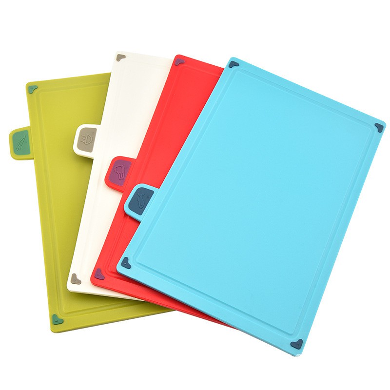 Bề mặt cắt dễ dàng, thân thiện với dao với các cạnh bắt vụn, chân chống trượt. Thớt được mã hóa màu cho các loại thực phẩm khác nhau,
