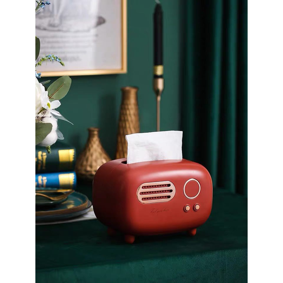 Hộp đựng khăn giấy để bàn hình radio cao cấp phong cách vintage - Radio Tissue Box✨Hộp đựng giấy ăn làm từ nhựa cao cấp nhập khẩu chắc chắn và bền đẹp, màu sơn patel xinh xắn