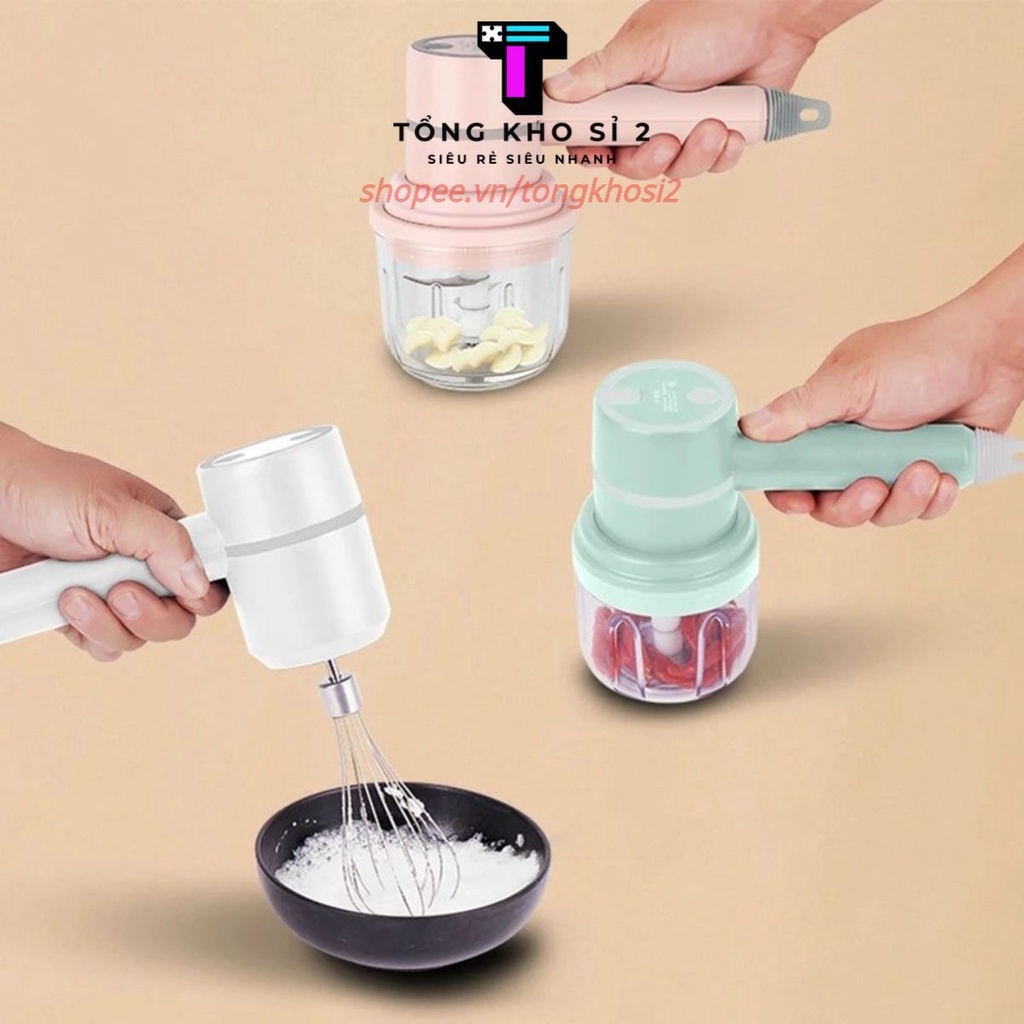 Thiết Bị Điện Gia Dụng > Đồ gia dụng nhà bếp > Máy chế biến thực phẩm & Xay thịt || PVN34181 Máy Đánh Trứng Cầm Tay 3 trong 1 đa năng pin sạc - Máy xay thịt tỏi ớt hạt tiêu đánh sữa cafe mini không dâyCòn hàng