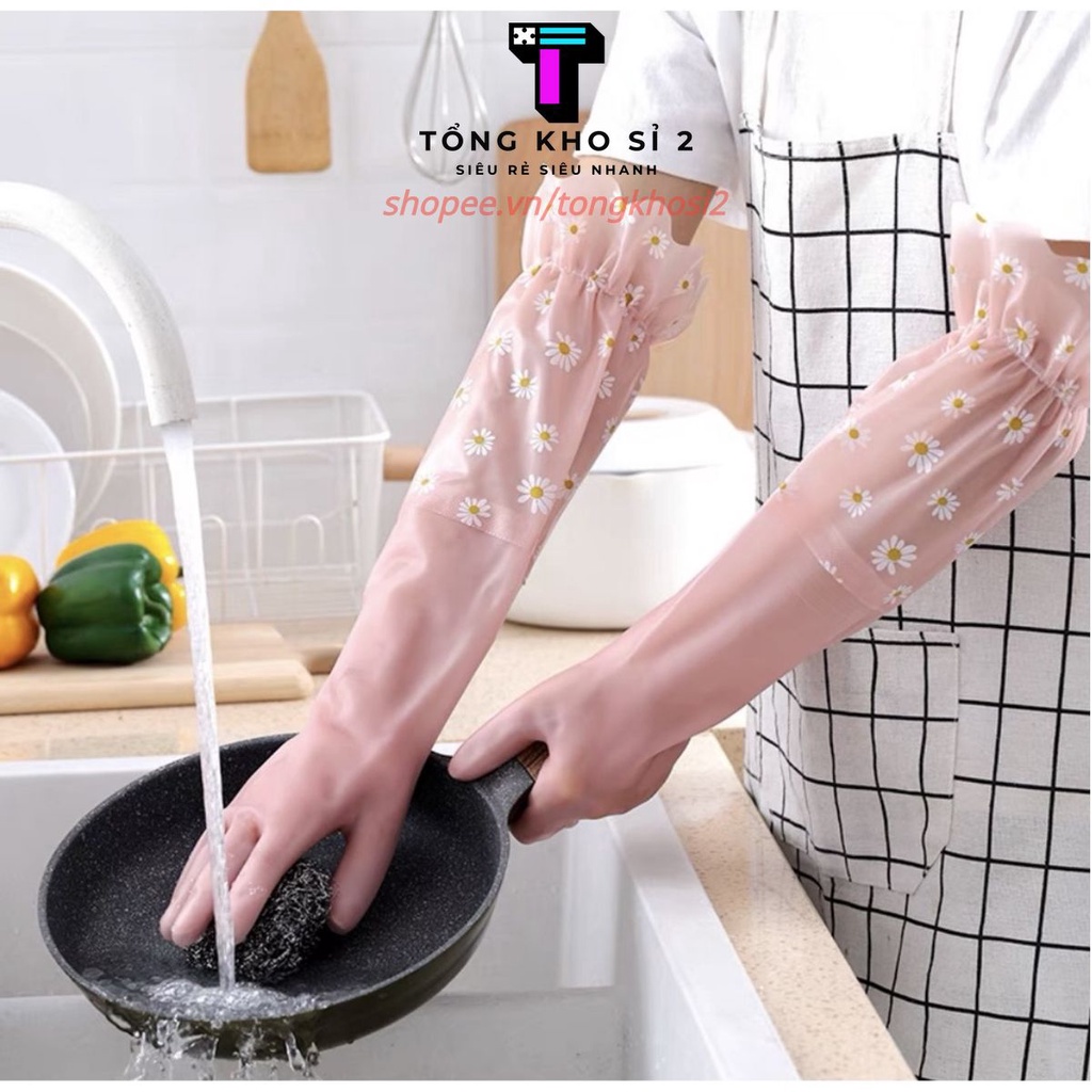 PVN41940 Găng tay cao su siêu dai, chông trượt, chống thấm hoạ tiết hoa cúc daisy siêu xinh
