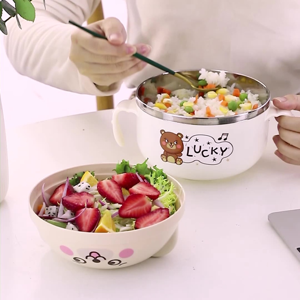 Nhà cửa & Đời sống > Bộ đồ bàn ăn > Tô || PVN42748 Bát úp mì - Ca đựng thức ăn hình gấu đáng yêu - Bát đựng cơm canh lõi Inox cao cấpCòn hàng