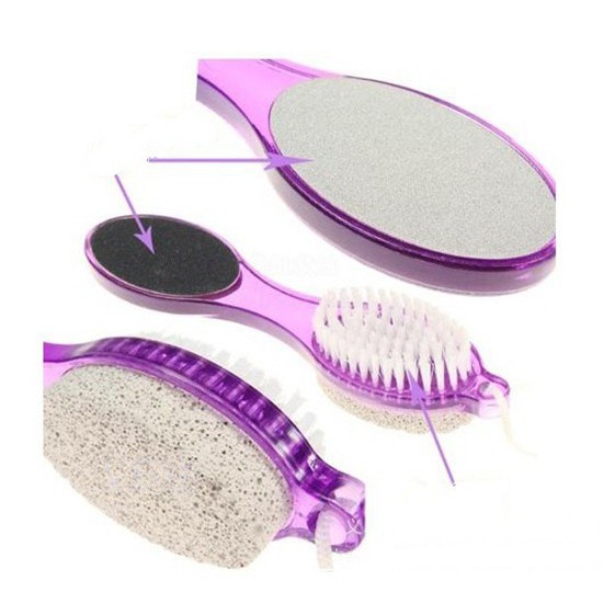 Dụng cụ chà gót chân được thiết kế tiện dụng với 4 mặt gồm bàn chải nhựa, đá bọt khô, bàn chải kim loại, bàn chà nhám. Nhờ đó, bạn có thể thực hiện việc chăm sóc gót theo đúng quy trình để có được gót chân hồng hào nhưý.