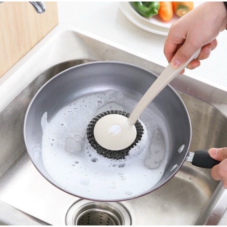 🌸 BÙI NHÙI THÉP CỌ NỒI CÓ TAY CẦM🍀 Dụng cụ chà rửa thông minh giúp bạn cọ tẩy nhanh những vết bẩm cứng đầu trên xoong, nồi, chảo mà không cần phải mất quá nhiều thời gian, không lo hại da tay