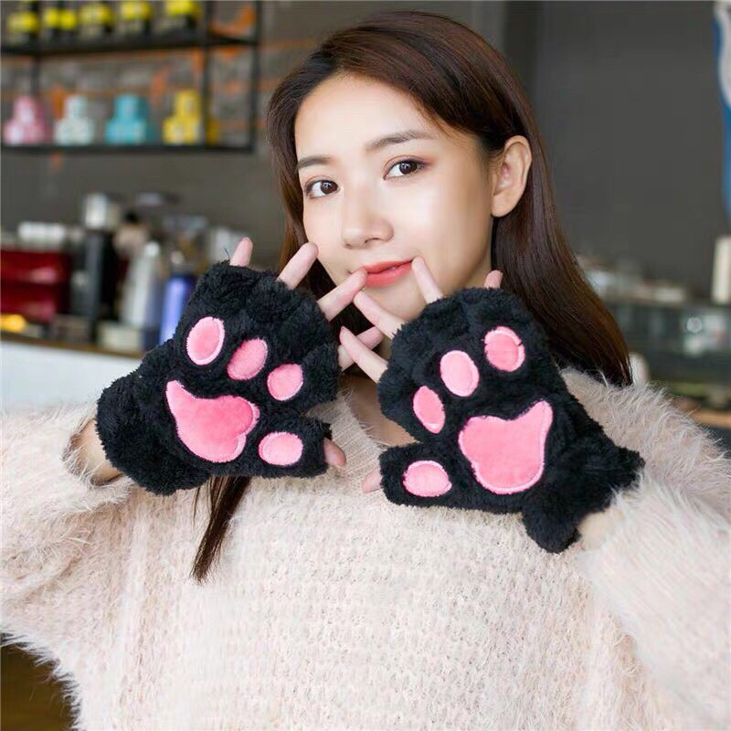 Găng tay lông hở ngón tạo tình bàn chân gấu, mèoCó các màu như hình