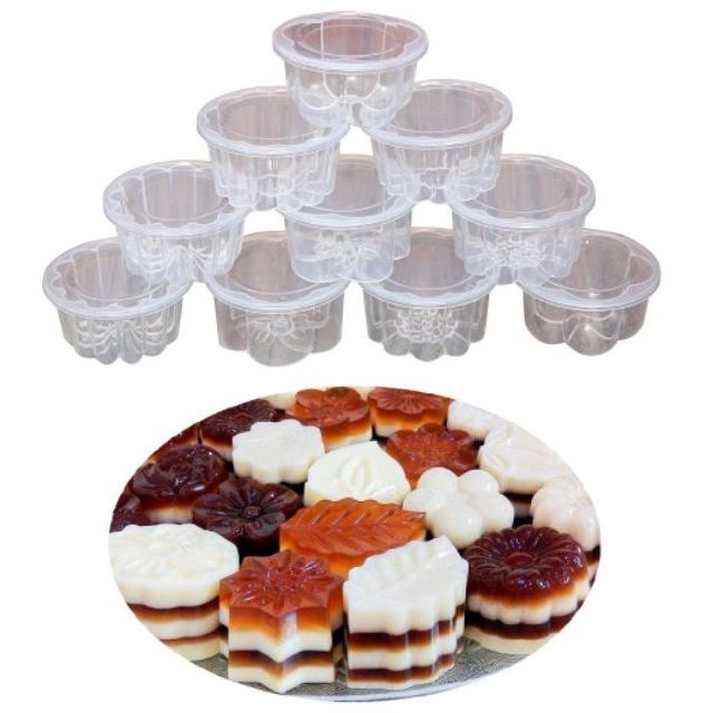 [Q. Bình Tân] Combo 10 Khuôn Làm Rau Câu , Bánh Flan , Rau Câu Trung Thu Hình Hoa Văn Có Nắp Tiện Lợi