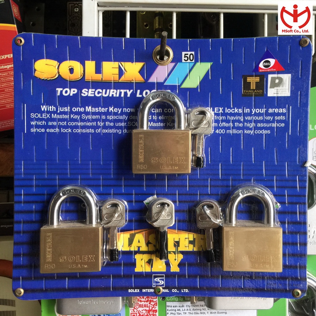 BỘ 3 Ổ KHÓA SOLEX R50 CHÌA CHỦ MASTER KEYThông tin sản phẩm