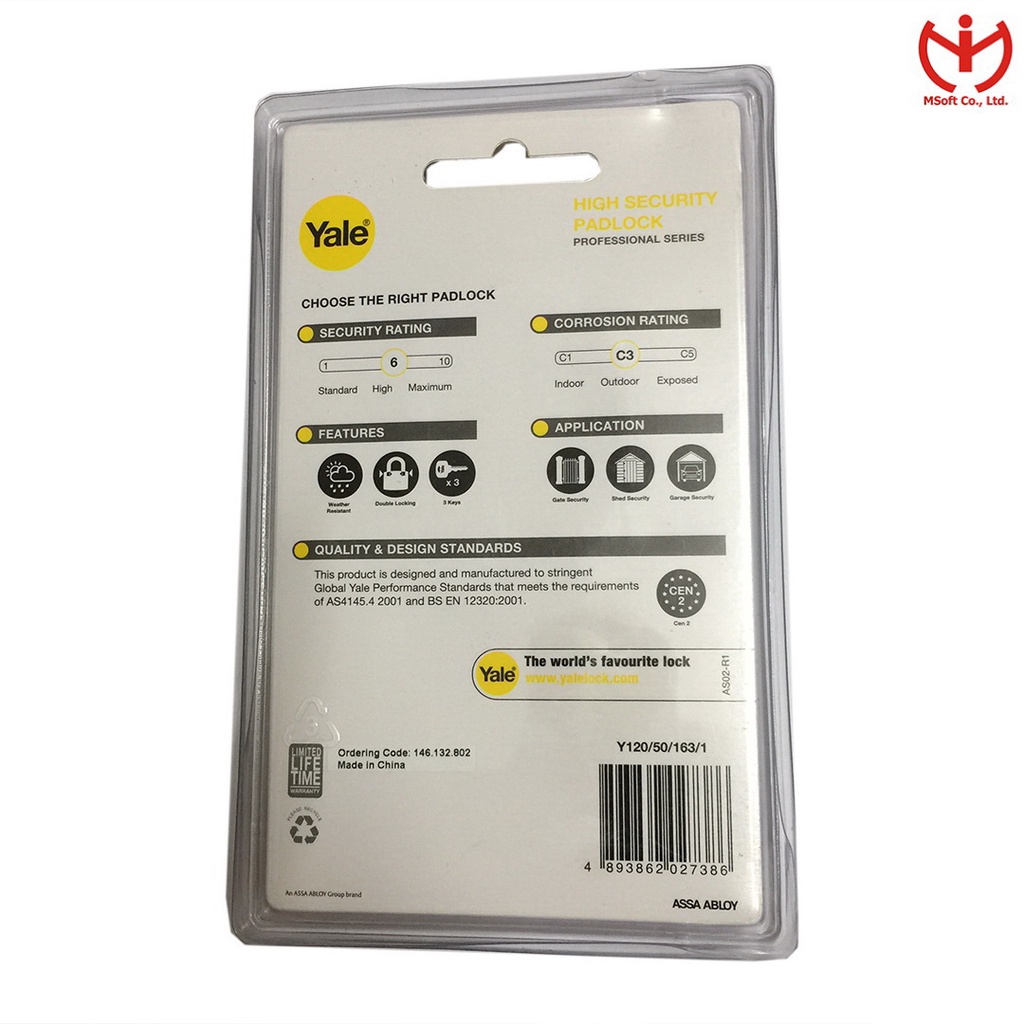 Nhà cửa & Đời sống > Bảo hộ gia đình > Khóa, ổ khóa || [Q5.HCM] Ổ khóa Yale 5 phân càng dài chìa răng Y120/50/163/1 - MSOFTCòn hàng