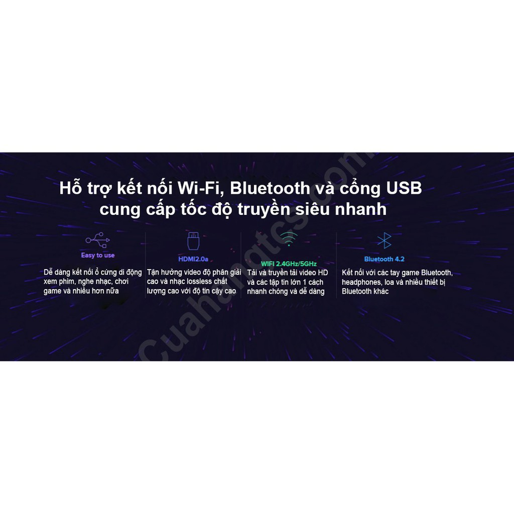 ✔ Có 1 cổng hdmi 2.0a; 1 cổng usb2.0 cho phép đọc dữ liệu từ bộ nhớ ngoài, 1 cổng AV SPDIF Out / 3.5mm audio output