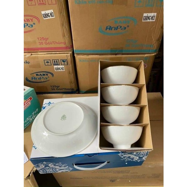 Bộ quà minh long viền bàng 24k ( cái chén viền vàng showroom ML bán 70k/ cái)Này nguyên bộ 4 chén 1 dĩa mà giá quá rẻ