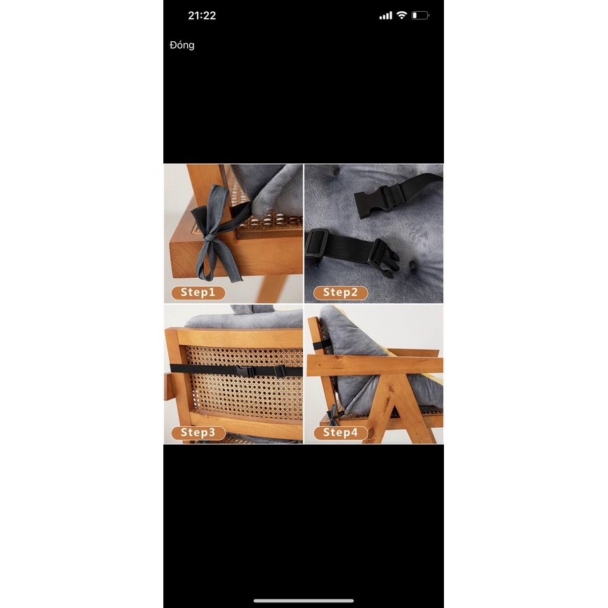 Lưu ý: Đệm là đệm bông nên cần phải có ghế tựa hoặc để dựa tường mới có thể dùng được ạ, nếu để bệt sàn không có phần tựa đệm mềm sẽ bị oải ra sau ạ.