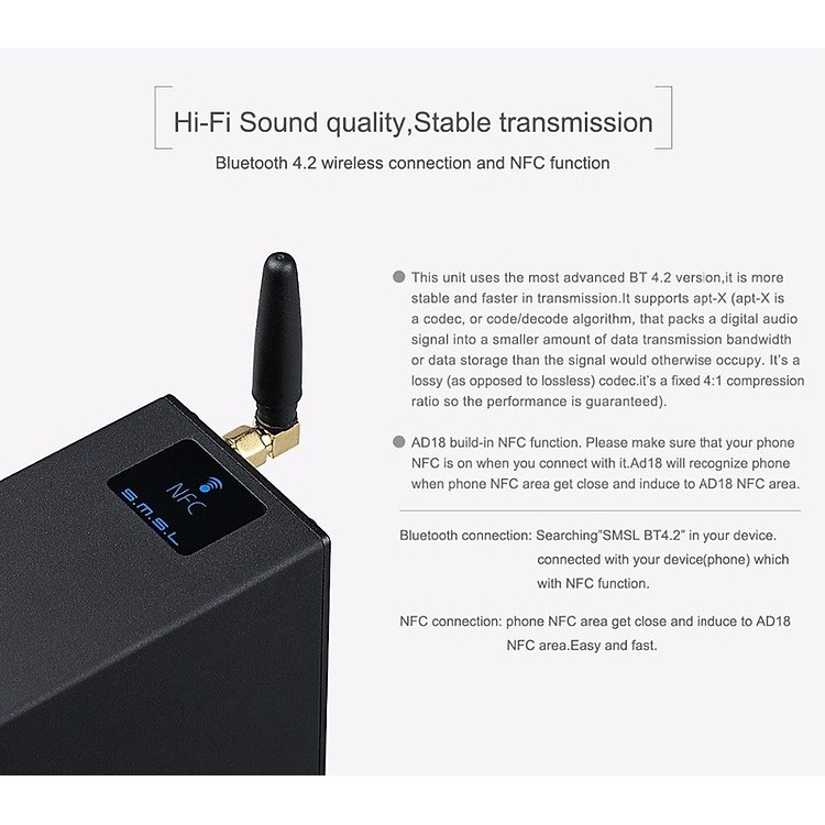 Giới thiệu (QUÀ TẶNG 199K) Bộ Khuếch Đại Âm Thanh S.M.S.L AD18 Kết nối không dây BT 42 tiên tiến và chức năng NFC