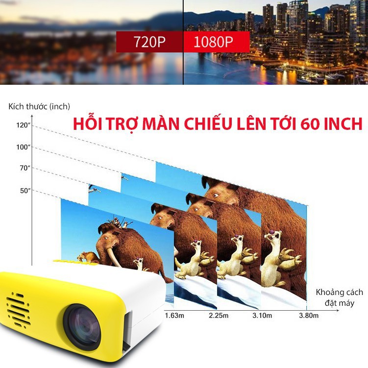 Máy Chiếu Mini CS-03 Smart LED Projector Cao Cấp Phiên Bản Mới 2019Thiết bị máy chiếu nhỏ gọn cầm tay CS-03 Smart LED Projector có độ phân giải 320 x 240, độ sáng 48 Lux hỗ trợ khả năng trình chiếu hình ảnh rõ, sáng trong nhiều môi trường. Khoảng cách chiếu cho máy lên tới 2 mét. Ưu điểm nổi bật của chiếc máy chiếu mini CS-03 Smart LED Projector: Máy chiếu mini CS-03 chỉ nhỏ bằng một chiếc iPhone x, tích hợp pin sạc nên dễ dàng đút túi để mang theo người như những thiết bị di động khác. CS-03 Smart LED Projector sử dụng công nghệ màu DLP cường độ sáng cho hình ảnh sắc net và chân thực, kết hợp cùng bóng LED cho tuổi thọ cao lên tới 30.000 giờ. Là một chiếc máy chiếu nhỏ gọn, đa chức năng. Máy chiếu mini LED Projector hỗ trợ xuất hình ảnh ra đến tối đa 40-60inch Hỗ trợ các cổng giao tiếp thông dụng như HDMI, USB (cắm smartphone hay USB Data xem phim nghe nhạc), Jack audio 3.5mm, khe cắm thẻ nhớ microSD,... Xem phim độ nét cao HD với USB hoặc ổ cứng ngoài. Ngoài ra còn có cổng microUSB giúp bạn lấy nguồn điện thì trực tiếp từ pin sạc dự trữ,... Với tuổi thọ đèn Led lên đến hơn 30.000 giờ, sản phẩm có kèm theo remote hồng ngoại điều khiển từ xa vô cùng tiện lợi.