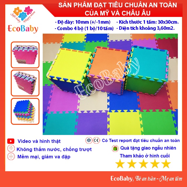 Giới thiệu [Quà Tặng 39K] Combo 4 Bộ Thảm Xốp Cho Bé Màu Trơn Kèm Quà Tặng 39K - 30x30cm - EcoBaby
