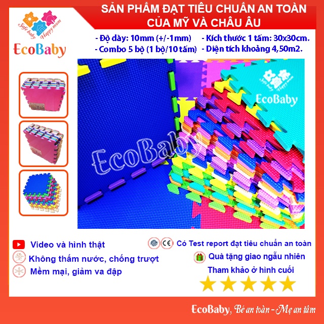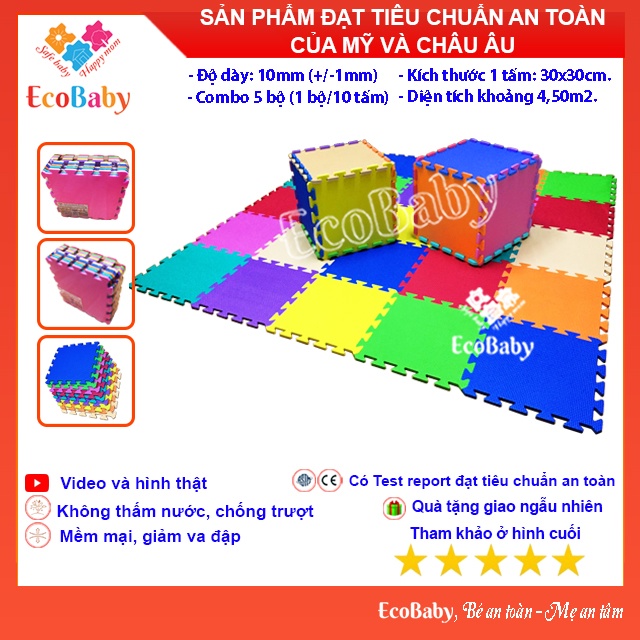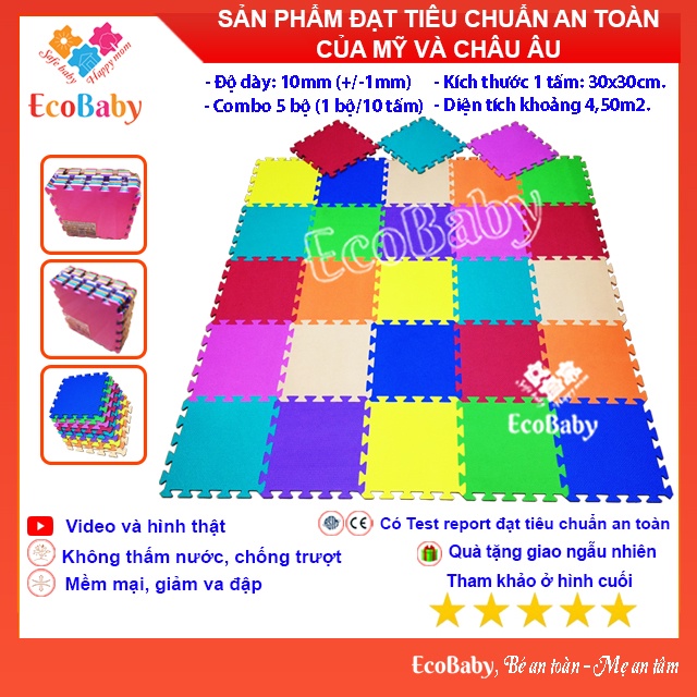 Giới thiệu [Quà Tặng 39K] Combo 5 Bộ Thảm Xốp Cho Bé Màu Trơn Kèm Quà Tặng 39K - 30x30cm - EcoBaby