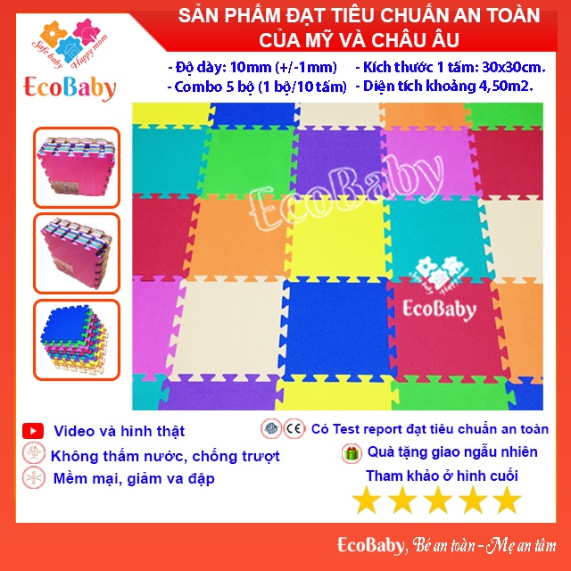 Combo 5 Bộ Thảm Xốp Cho Bé Màu Trơn Kèm Quà Tặng 39K - 30x30cm - EcoBabyXuất xứ: Việt Nam