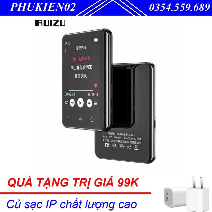 (Quà tặng 99k) Máy Nghe Nhạc MP3 Màn Hình Cảm Ứng Bluetooth Ruizu D66 Bộ Nhớ Trong 16GB - Hàng Chính Hãng