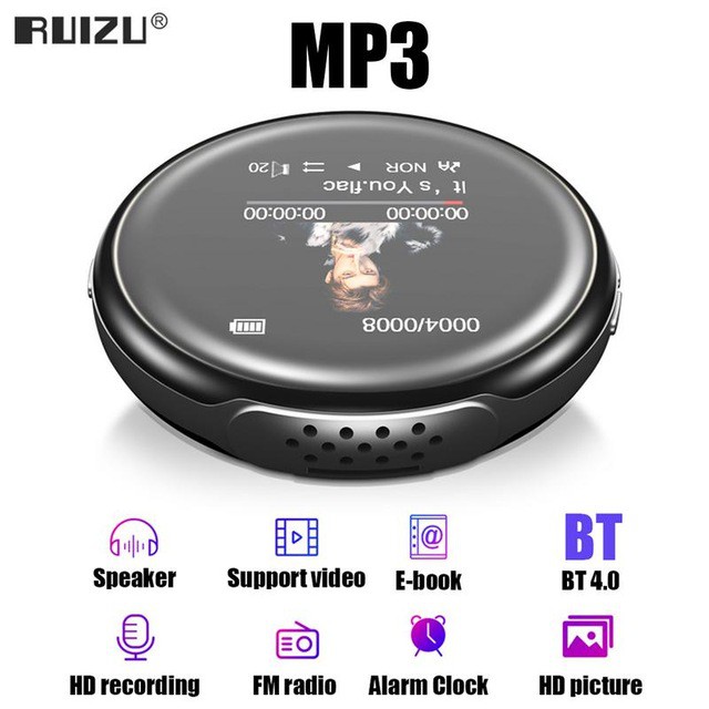 Máy nghe nhạc Ruizu M1 kết nổi Bluetooth. Máy nghe nhạc Ruizu M1 dạng tròn, kèm loa ngoài, có thể nghe nhạc, ghi âm, ebook, từ điển. Màn hình hiển thị 1.4 inches khá bé tuy nhiên vẫn đủ để người dùng sử dụng thao tác.Tính năng cơ bản của máy nghe nhạc Ruizu M1
