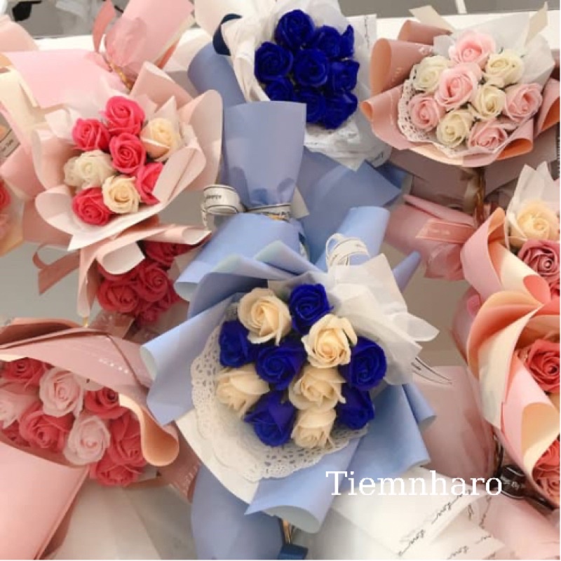 Bó hoa hồng sáp thơm 10 bông tặng kèm túi và thiệp tặng bạn gái, mẹ, cô giáo, người thân yêuBó hoa to đẹp phối màu nhẹ nhàng, ngọt ngào phong cách Hàn Quốc mới nhất, không cần phân biệt độ tuổi ai nhận cũng sẽ thích mê