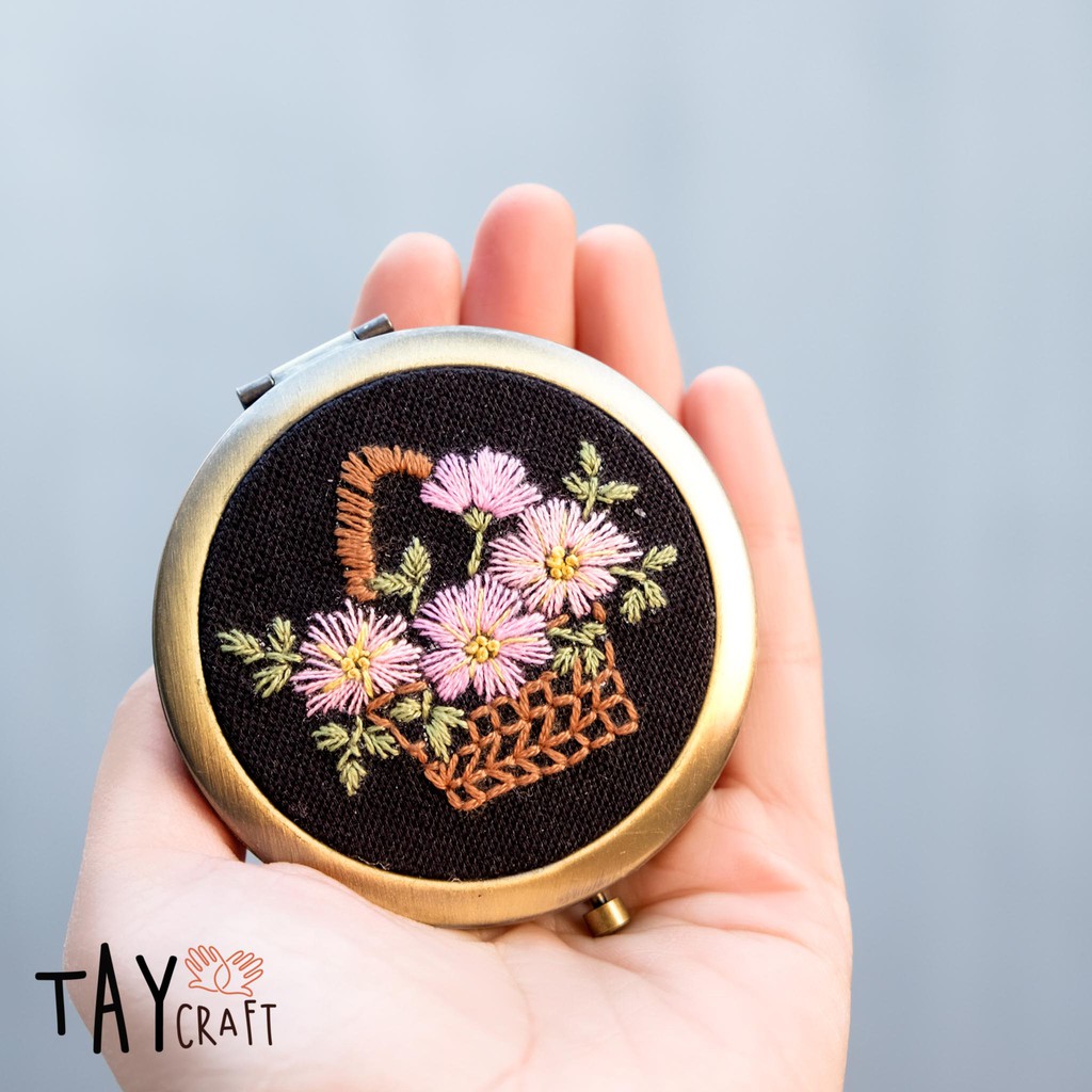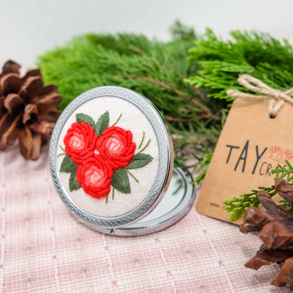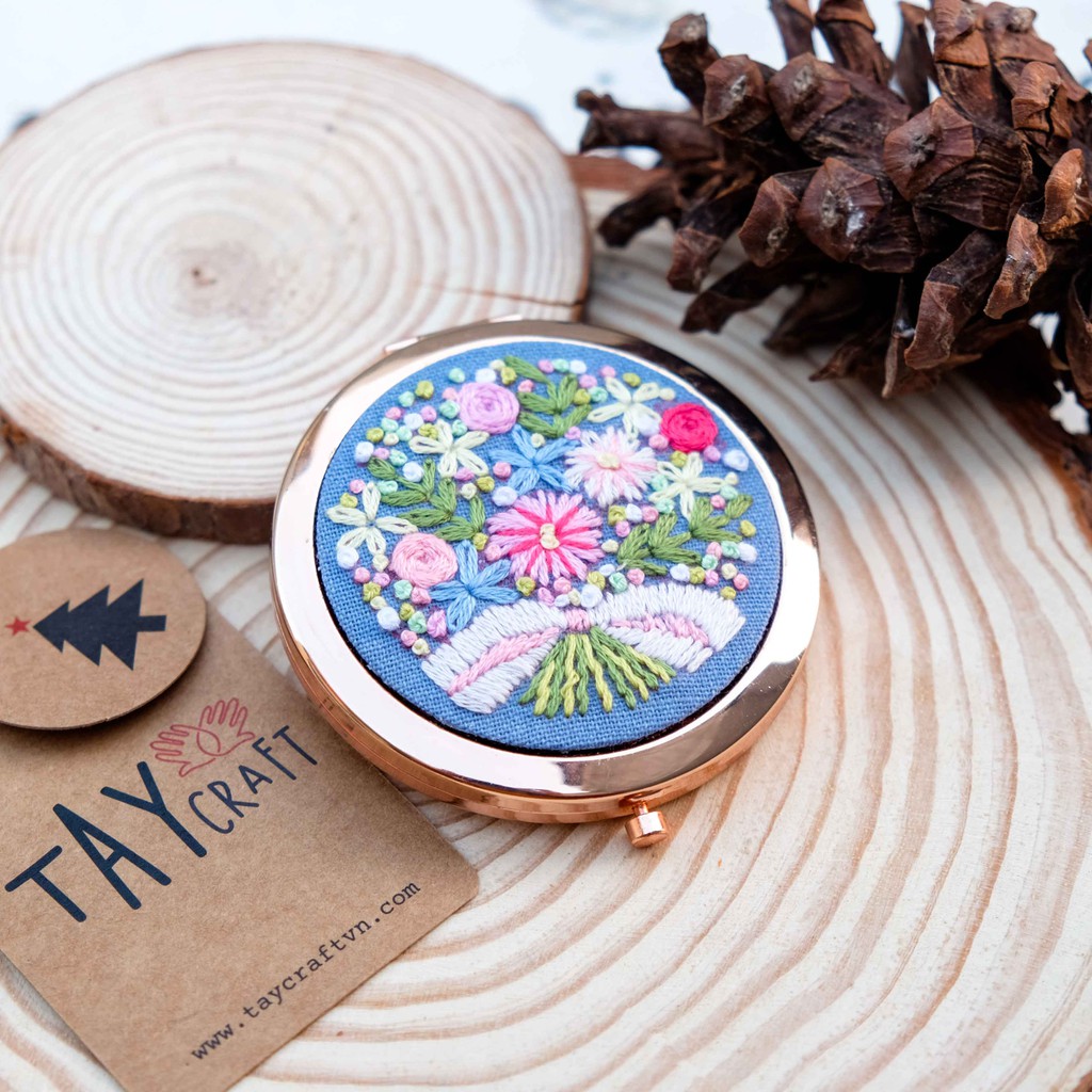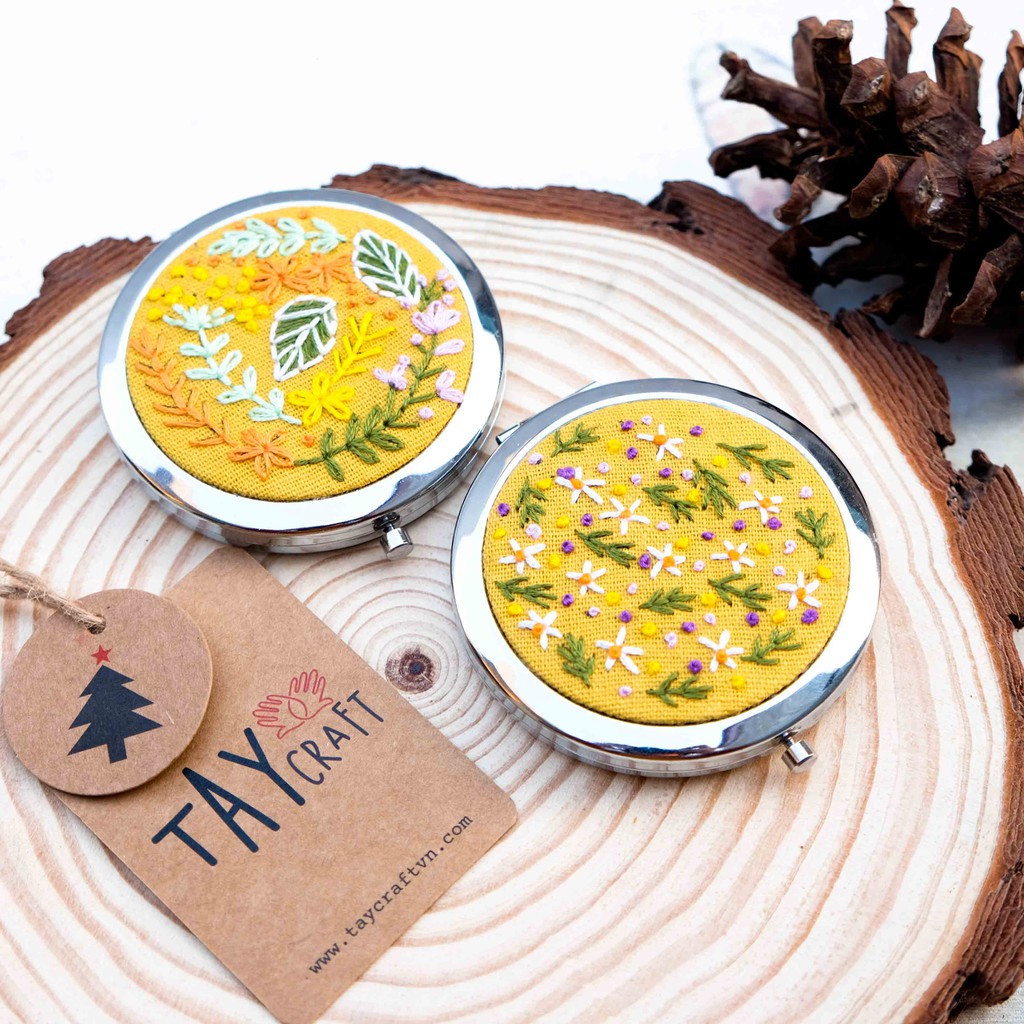 [QUÀ TẶNG BẠN GÁI] Gương gấp bỏ túi thêu tay, gương trang điểm handmade