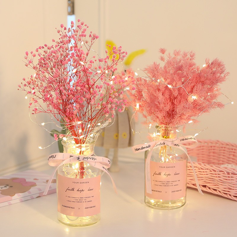 QUÀ Tặng ] Bình hoa khô kèm dây điện và nơ xinh đẹp