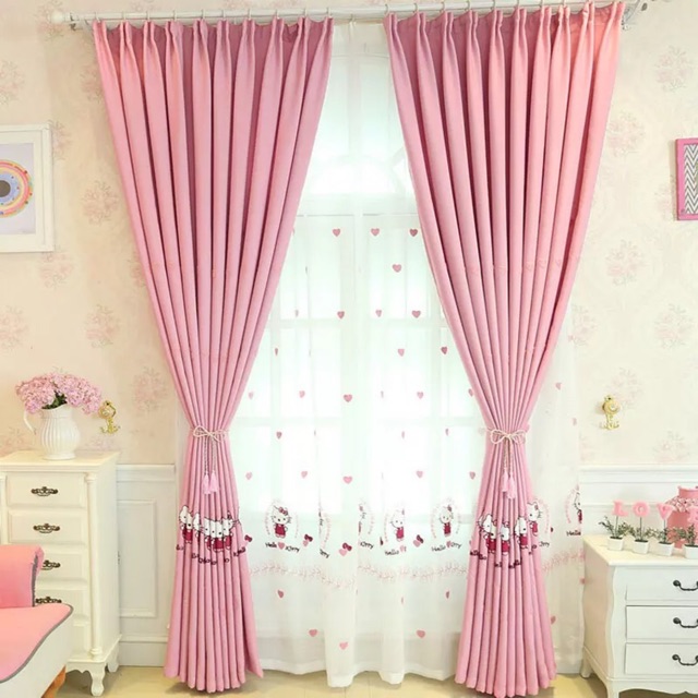 Nhà cửa & Đời sống > Trang trí nhà cửa > Rèm cửa, màn che || (QUÀ TẶNG CHO BÉ) Rèm Thêu Kitty xinh xắn, rèm cửa màu hồng trang trí phòng ngủ trẻ emCòn hàng