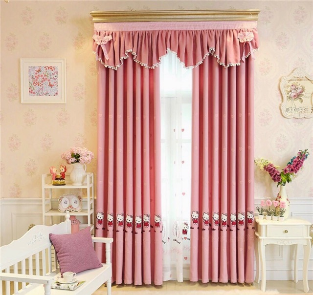Giới thiệu (QUÀ TẶNG CHO BÉ) Rèm Thêu Kitty xinh xắn, rèm cửa màu hồng trang trí phòng ngủ trẻ em