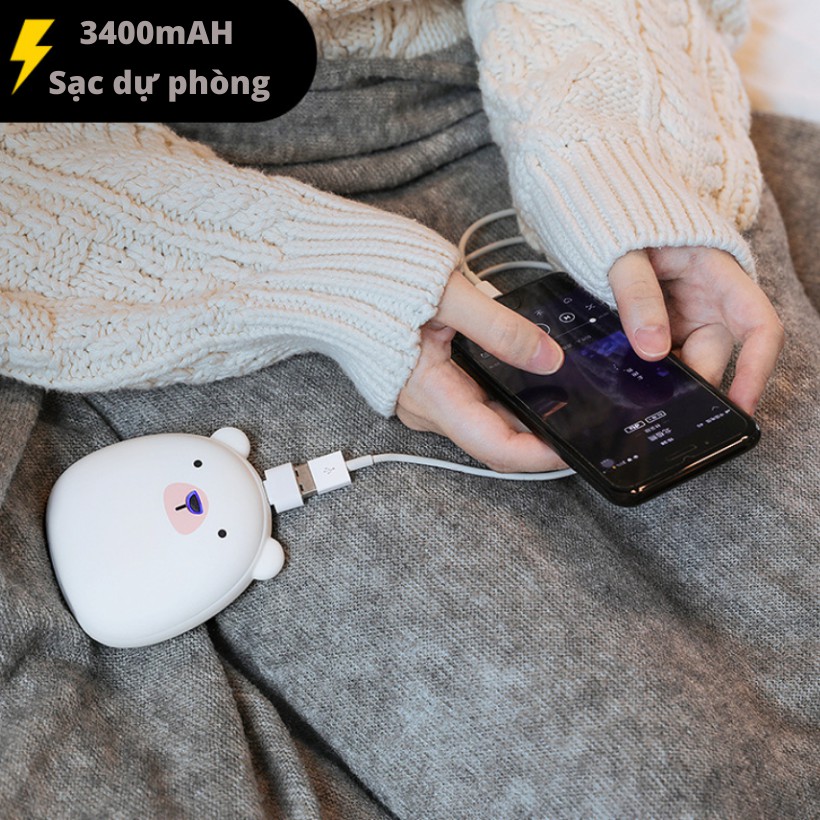 ● Máy sưởi tay điện, Hệ thống sưởi hai bên, sạc dự phòng điện bỏ túi 3400 mAh