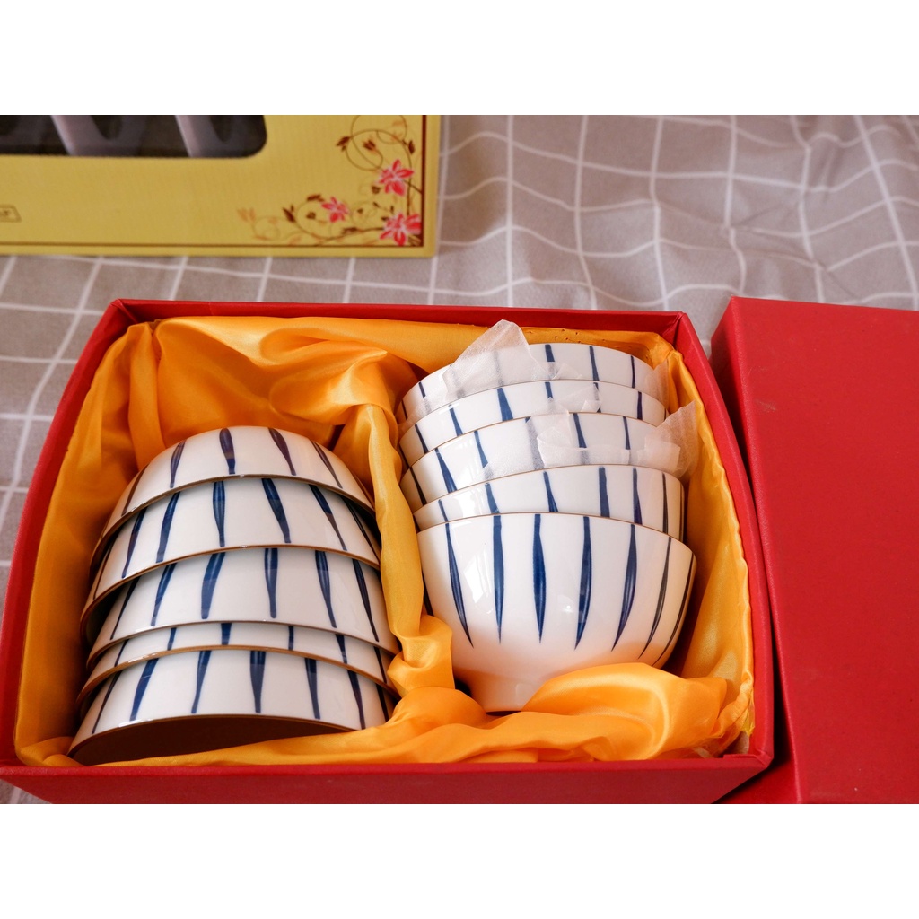 Nhà cửa & Đời sống > Bộ đồ bàn ăn > Tô || [Quà Tặng Gốm Sứ số 3]Bộ 6,10 Bát Cơm Sứ Bát Tràng Họa Tiết Kẻ [BÁT TRÀNG] men dầy dặn,cực đẹpCòn hàng