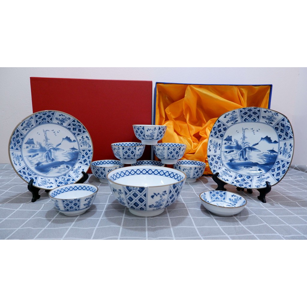 Giới thiệu [QUÀ TẶNG GỐM SỨ số 7]Bộ Bát Đĩa Vẽ Sơn Thủy[BÁT TRÀNG]có 2 SET 11và 14 món,họa tiết độc lạ,viền vàng sang trọng,tinh tế
