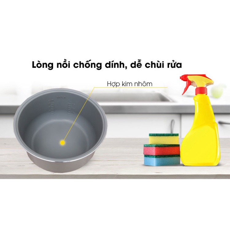 Lòng nồi cơm điện dày 1.7 mm bằng chất liệu hợp kim nhôm tráng men chống dính bền bỉ, an toàn với sức khỏe