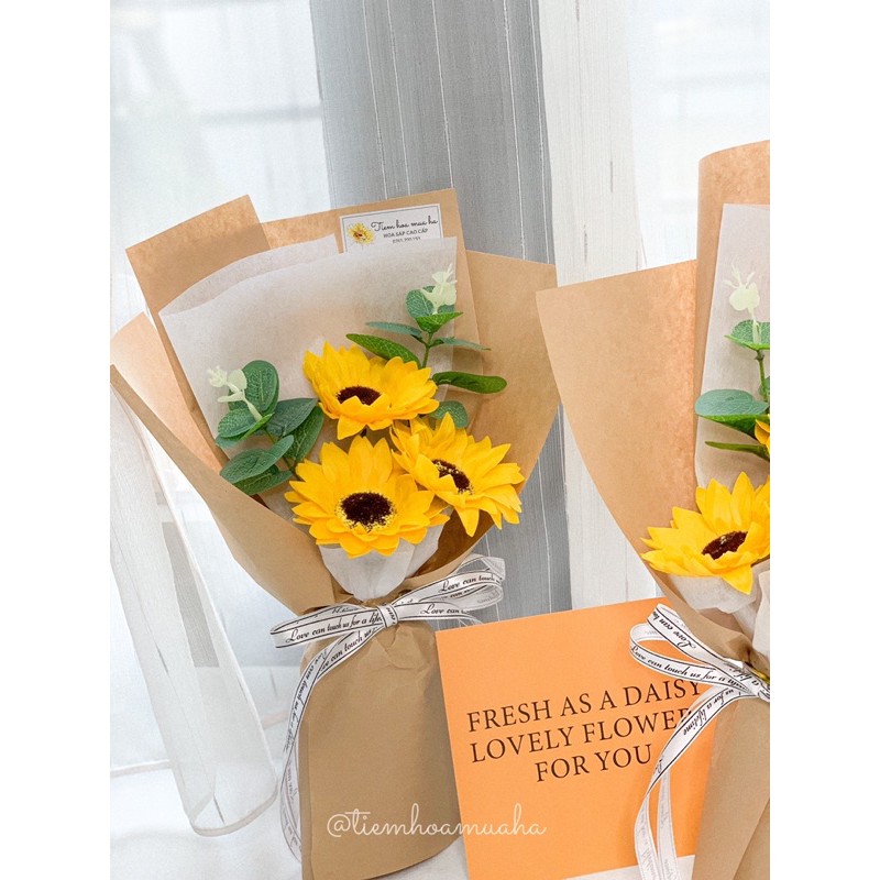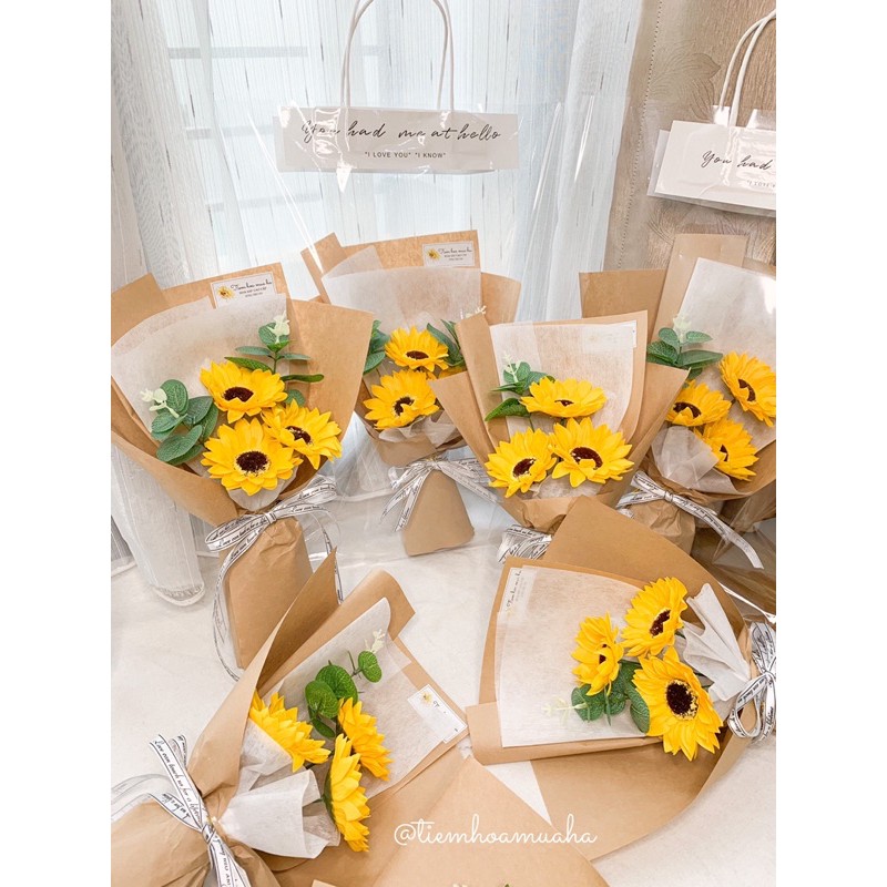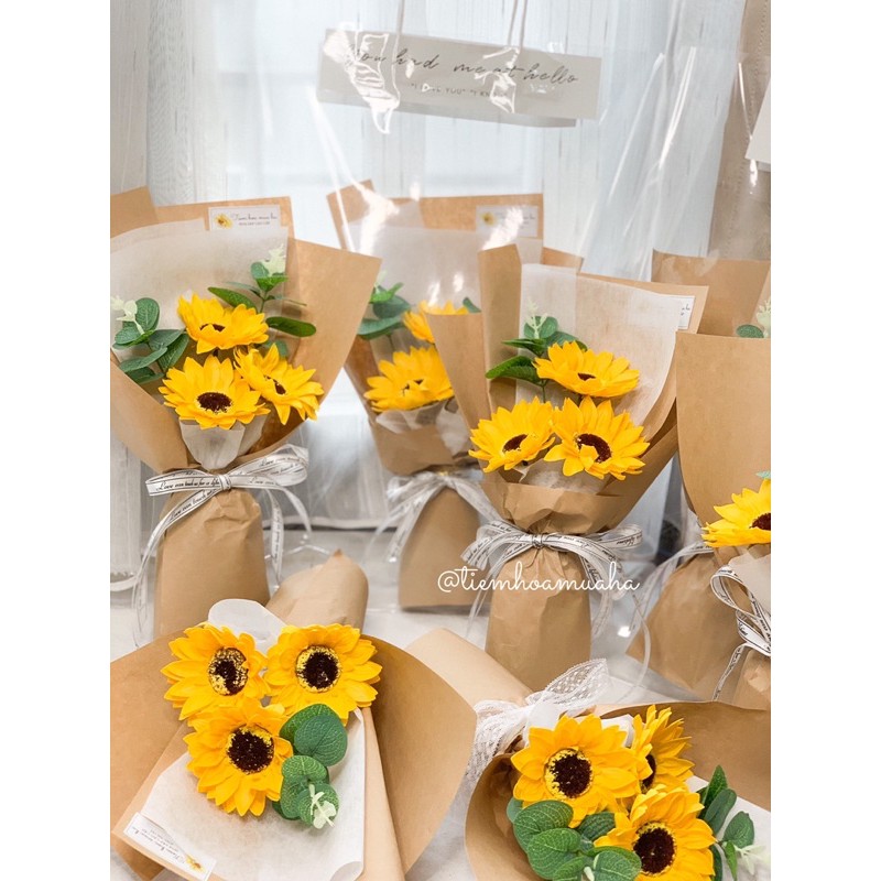 [Quà Tặng] Hoa sáp hướng dương, hoa hồng bó 3 bông (kèm túi) - Sinh nhật, hội nghị, sự kiện, phụ nữ, lưu niệm, trang trí