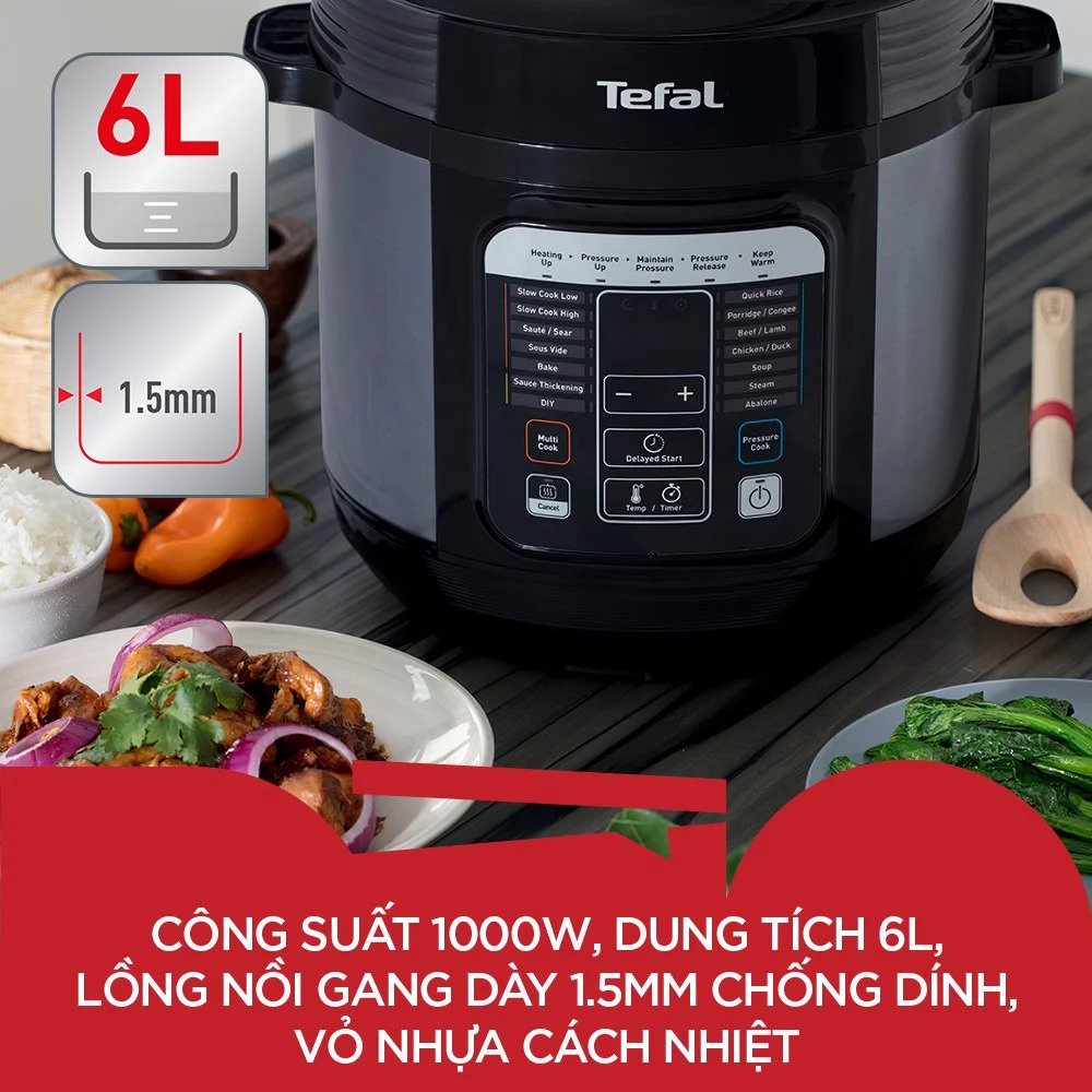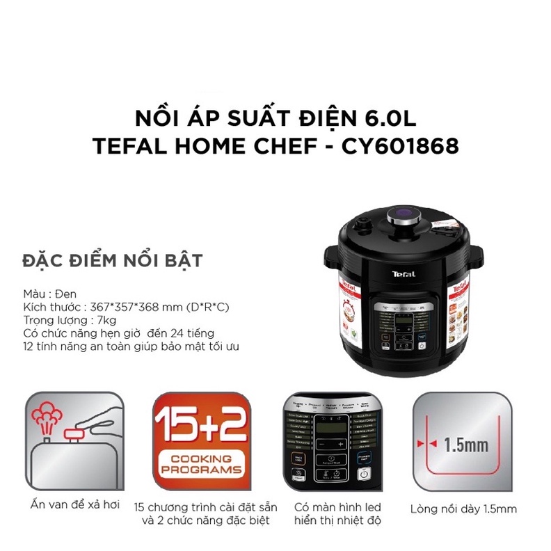 Thiết Bị Điện Gia Dụng > Đồ gia dụng nhà bếp > Nồi áp suất || [QUÀ TẶNG KẸO ALPENLIEBE ]Nồi áp suất điện đa năng Tefal Home Chef 6.0L CY601868Còn hàng