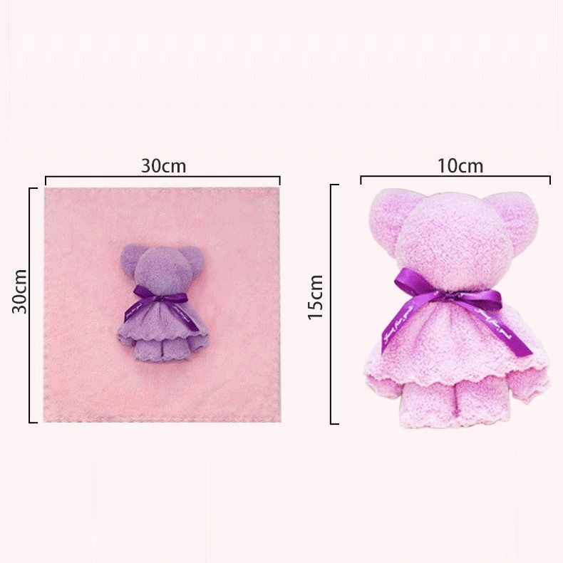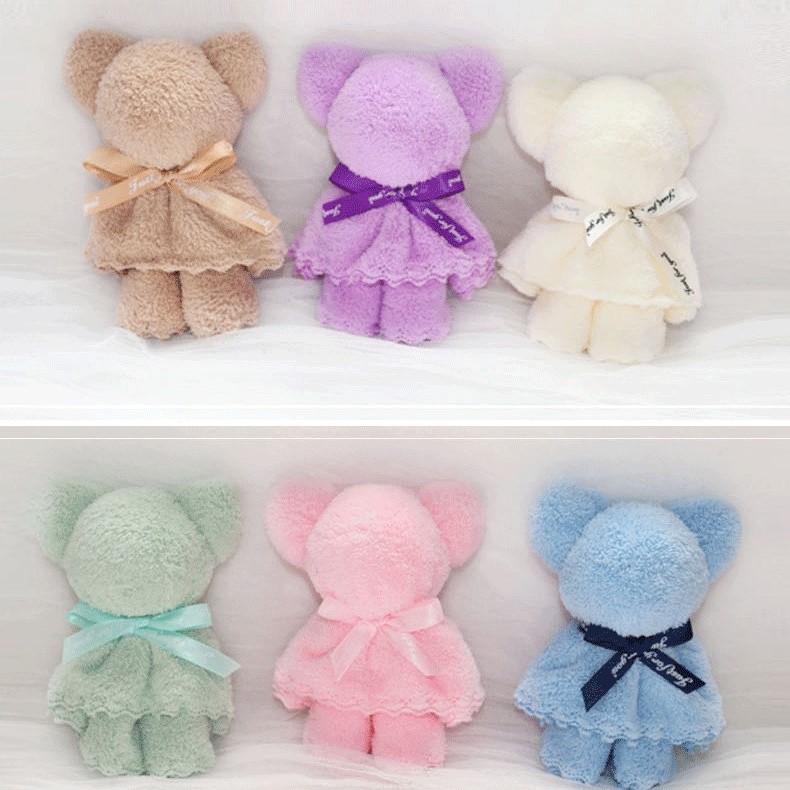 Quà tặng siêu xinh xắn đáng yêu cho khách hàng đến từ nhà Hufuholic đây. Chiếc khăn mặt được gấp thành hình gấu bông nhiều màu với chất liệu sợi bông mềm mịn, siêu thấm nước, êm ái và an toàn tuyệt đối cho da. Sợi vải mềm mại, mát mịn, dễ giặt, nhanh khô, đặc biệt không bị xù lông, phai màu hay khô cứng sau khi giặt.