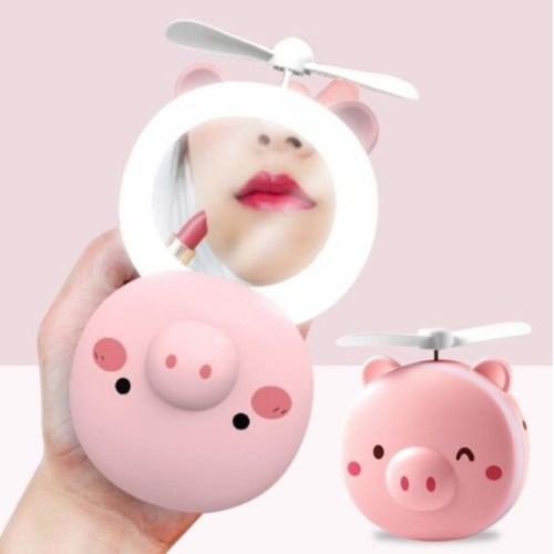 Gương cầm tay có đèn led kèm quạt mini fan kiểu dáng ngộ nghĩnh:Gương đèn led có quạt tích hợp 3 trong 1 sẽ vô cùng tiện lợi khi bạn ra đường. Gương kèm đèn led giúp bạn trang điểm dễ dàng hơn, dù là đang ở nơi thiếu sáng, quạt mini quạt mát cho bạn sự dễ chịu trước thời tiết oi bức, nóng nực.