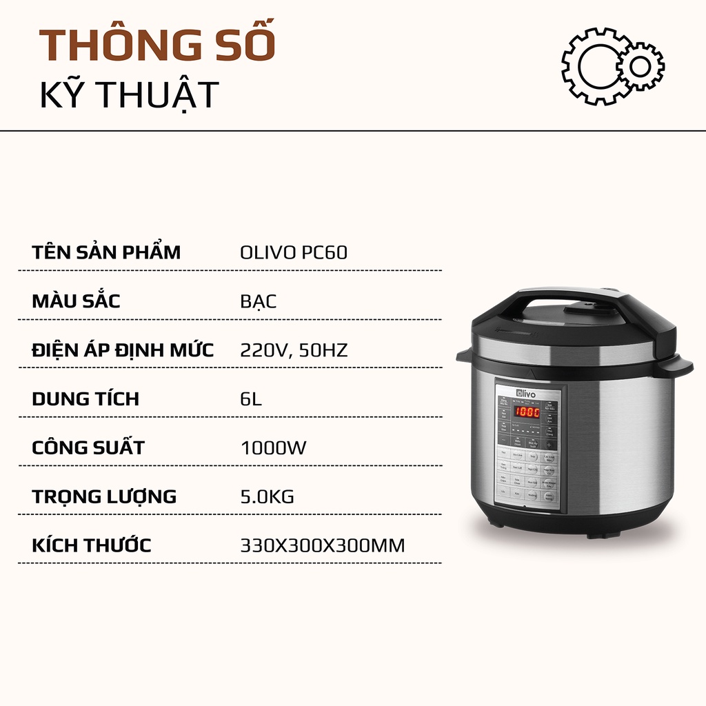 ✔️ NHỮNG ƯU ĐIỂM VƯỢT TRỘI CỦA NỒI ÁP SUẤT ĐIỆN ĐA NĂNG OLIVO PC60