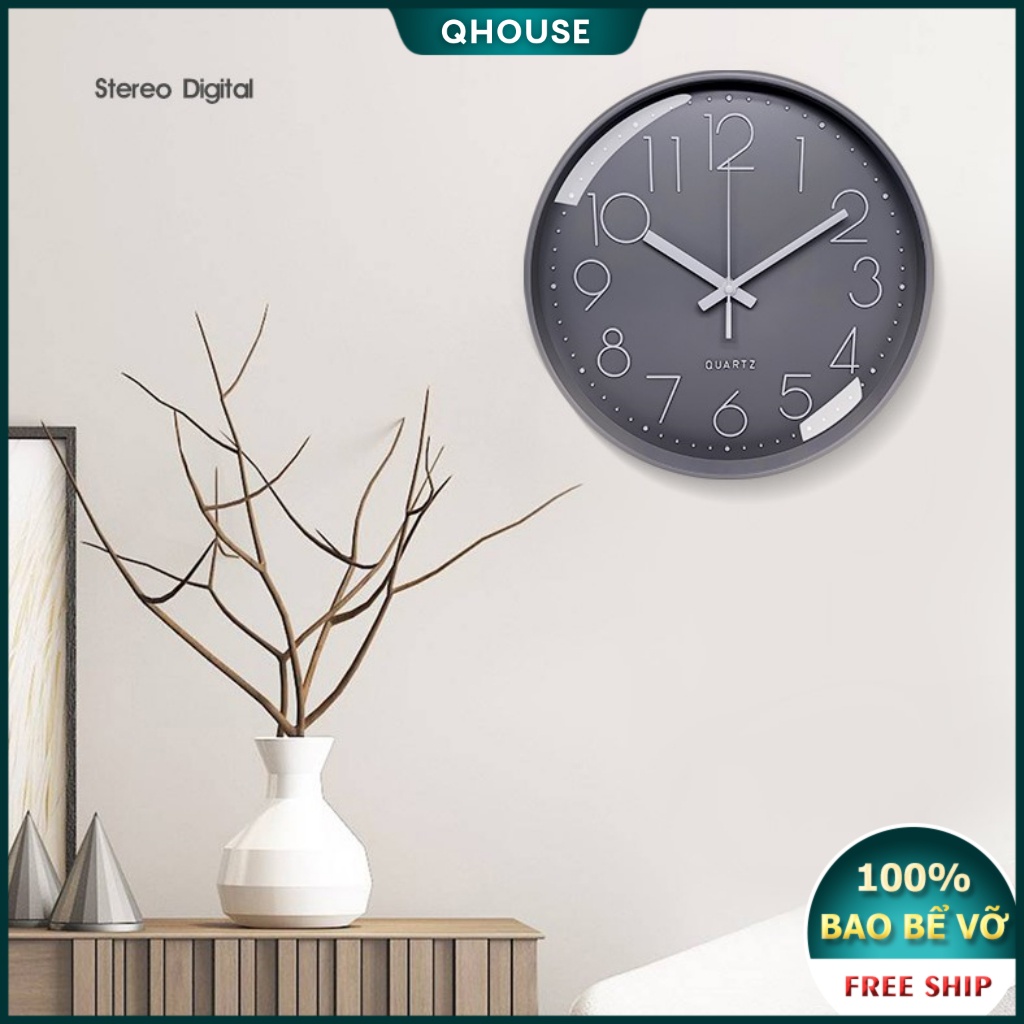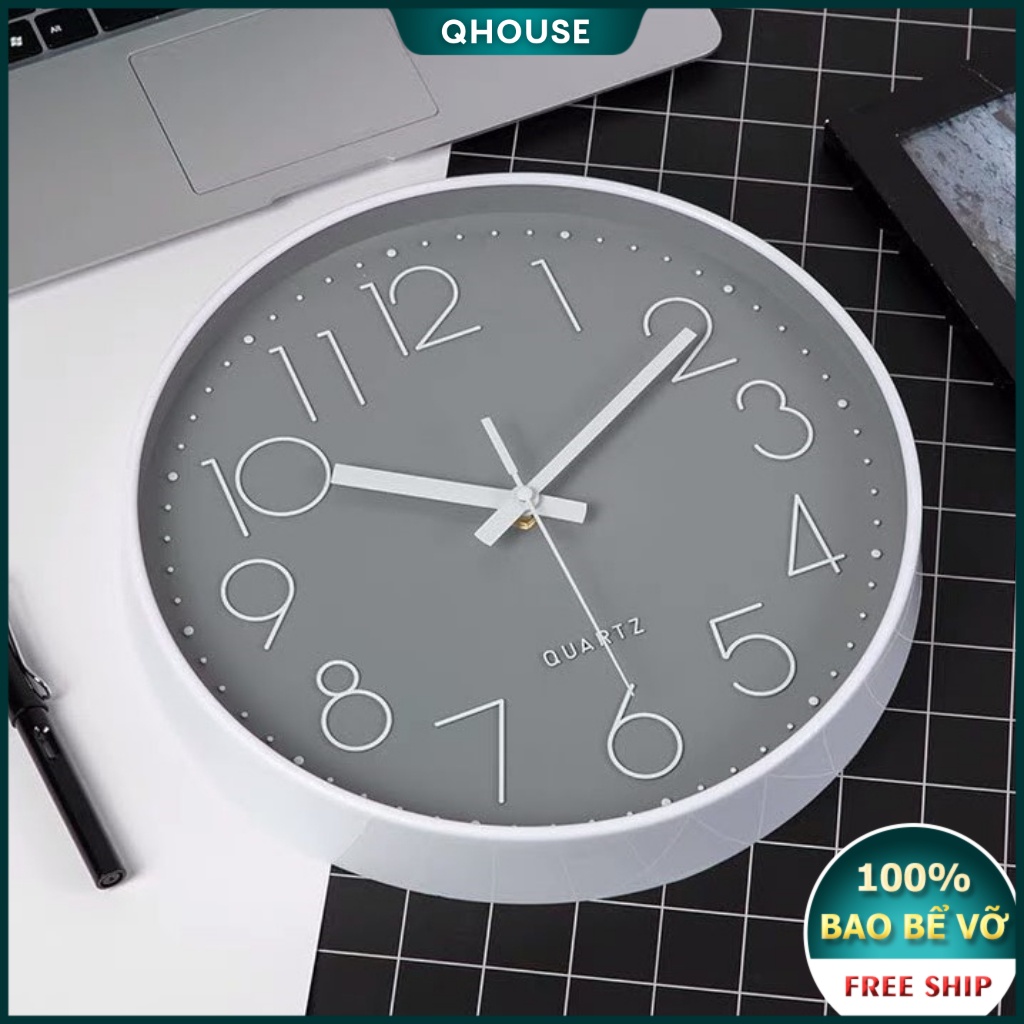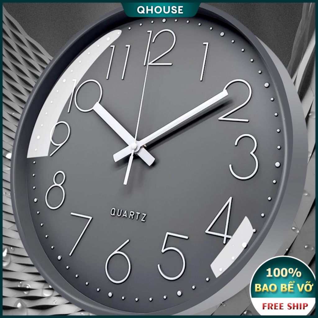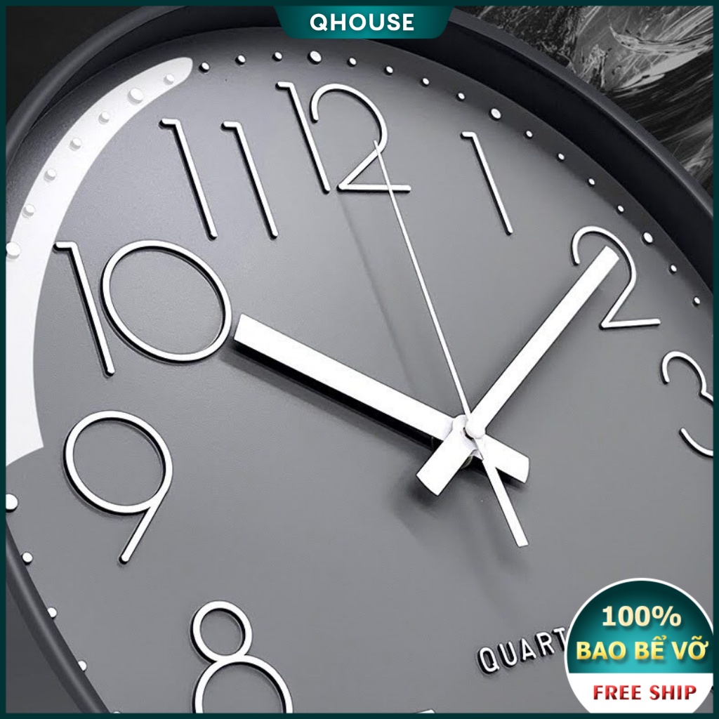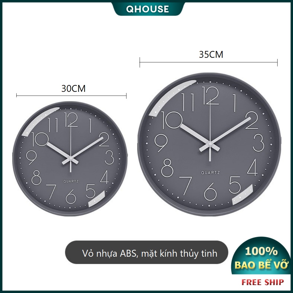 Đồng hồ treo tường trang trí Qhouse máy kim trôi cao cấp họa tiết sang trọng đường kính 30cm & 35cm