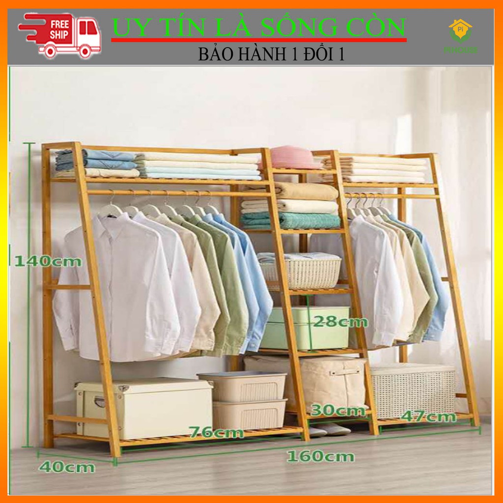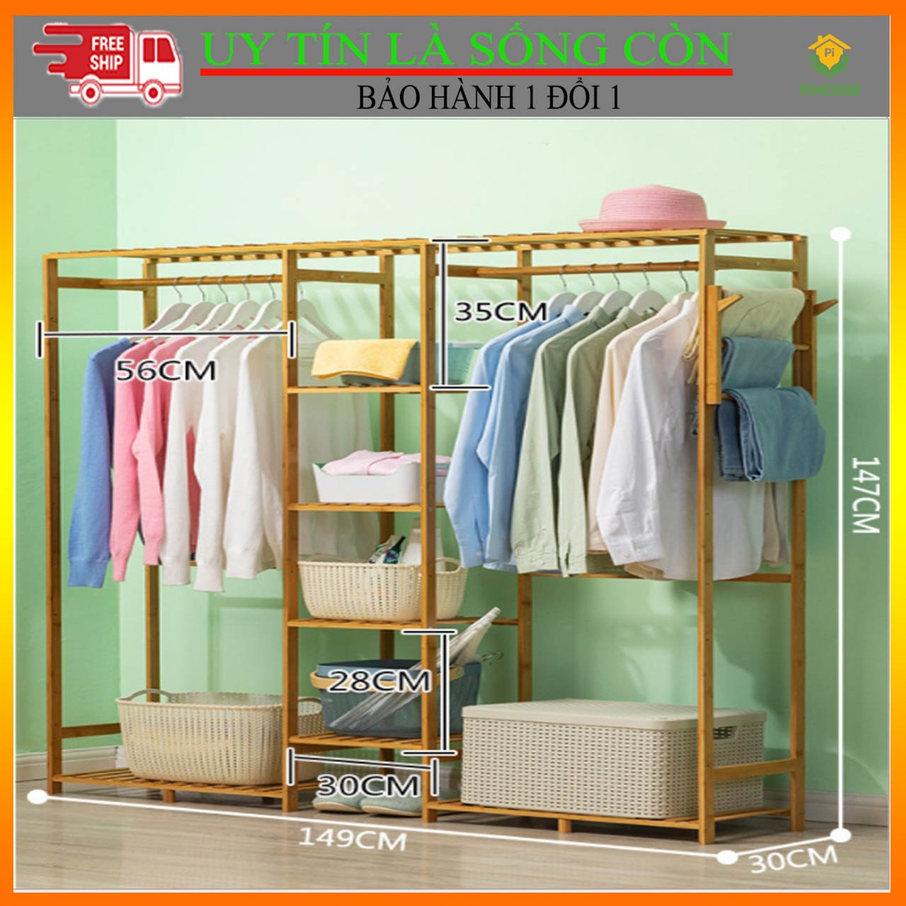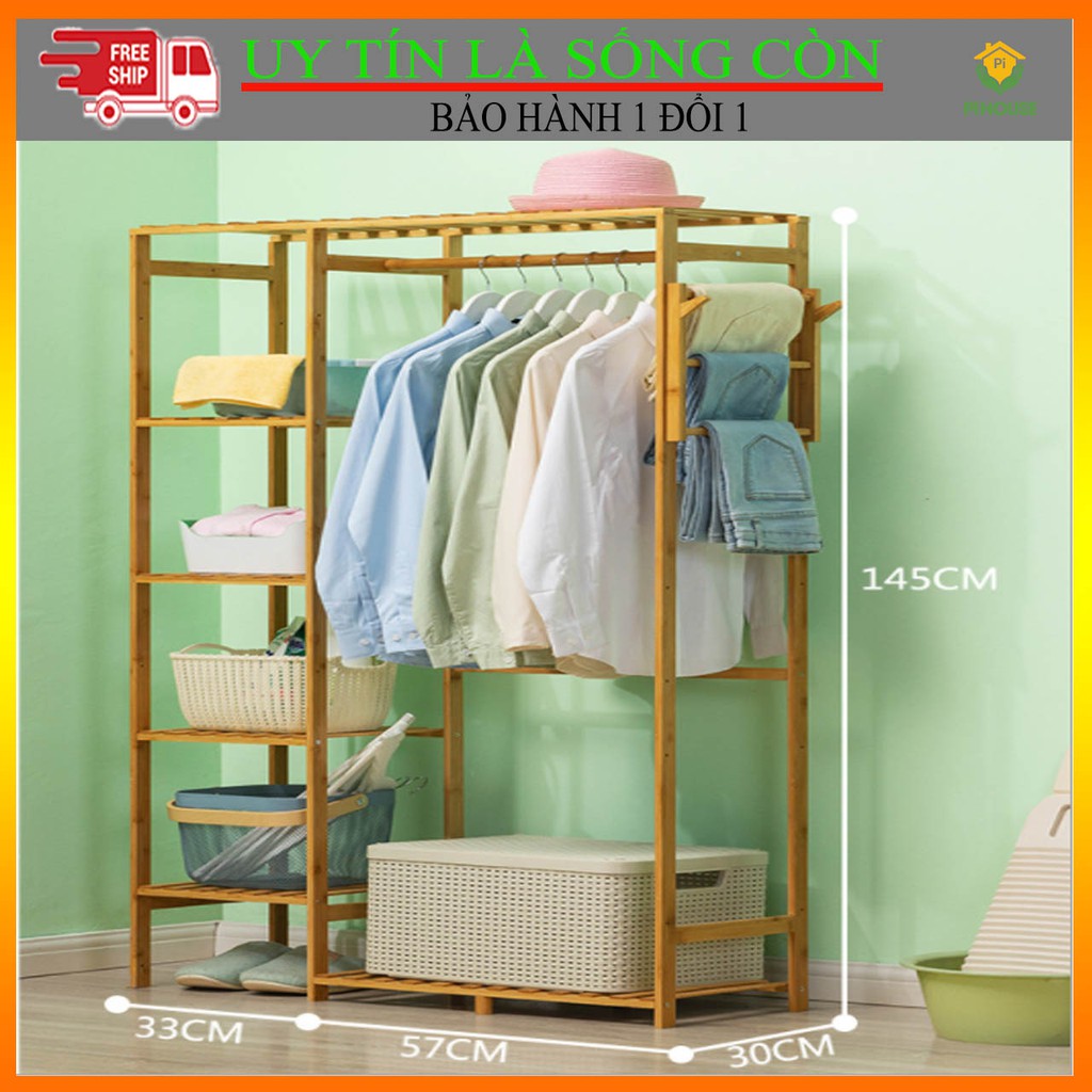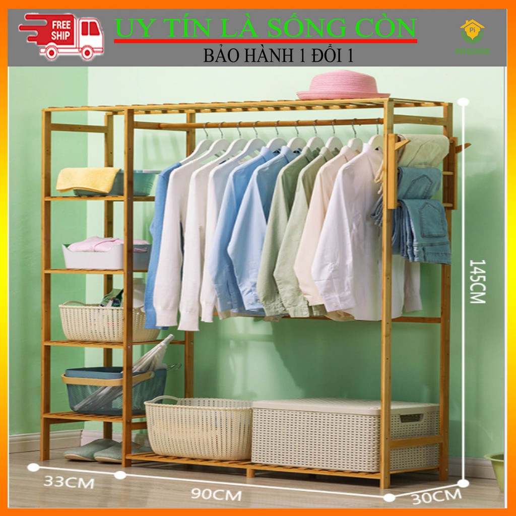 Nhà cửa & Đời sống > Dụng cụ chăm sóc nhà cửa > Dây phơi & giá phơi quần áo || [QUÀ TẶNG MÓC 9 LỖ] Giá kệ treo quần áo đa năng bằng gỗ tre thân thiện chịu tải tốt thay thể tủ quần áo cồng kềnhCòn hàng