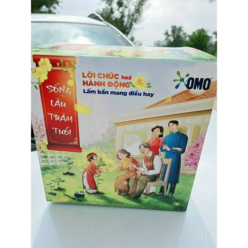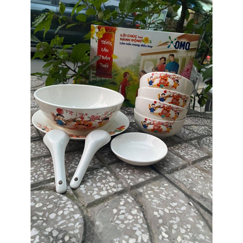 Bộ quà tặng OMO 9 món gốm sứ cao cấp 4 chén 2 muỗng 1 tô 1 dĩa lớn 1 đĩa nhỏ đựng nước chấm