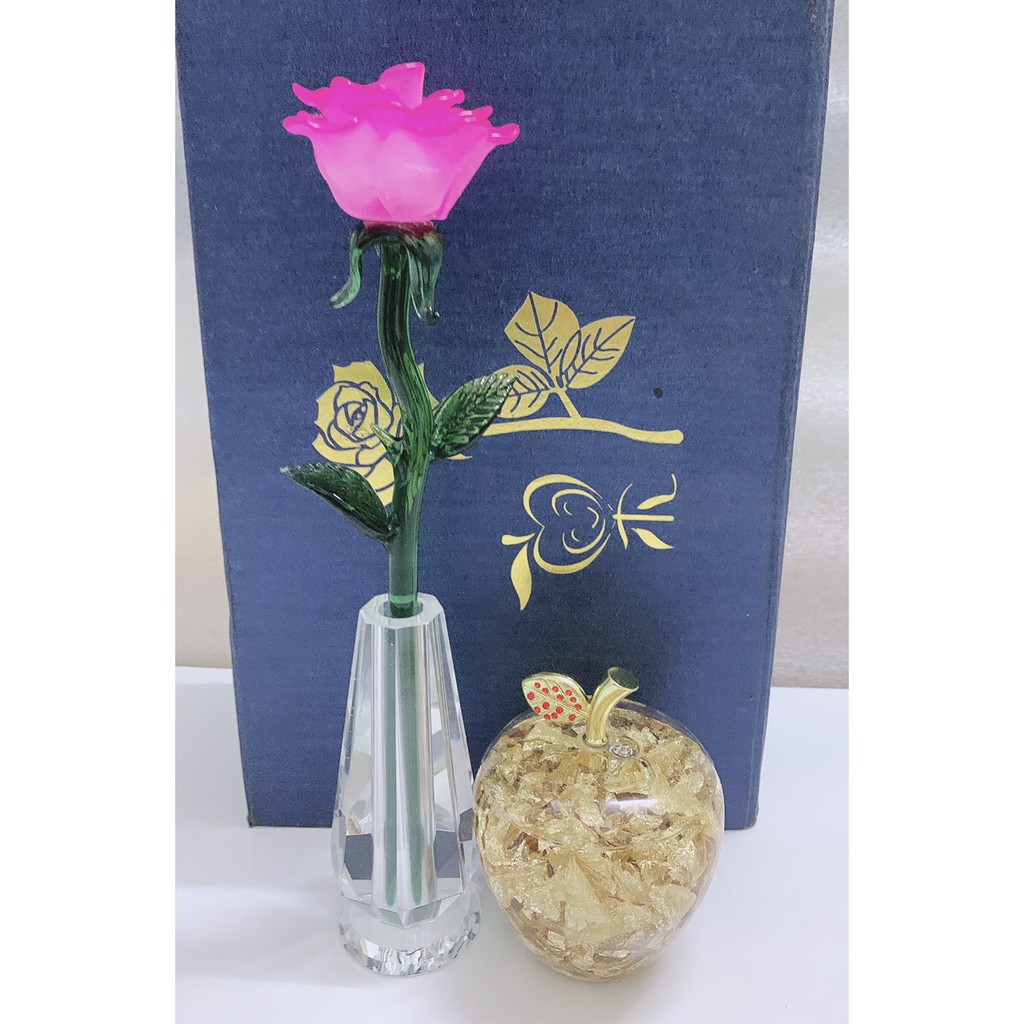 ( Quà tặng tinh yêu ) Sét hoa hồng, lọ cắm thủy tinh và quả táo vàng sang trọng