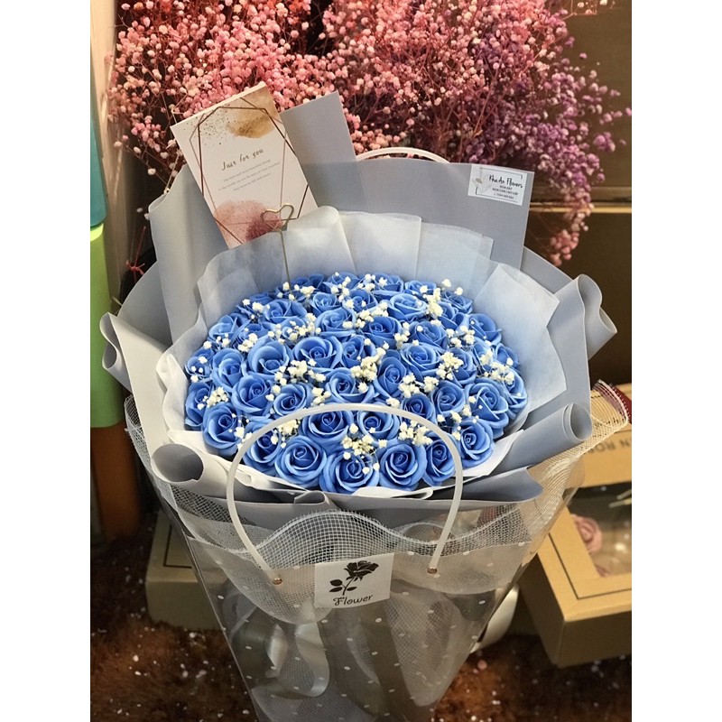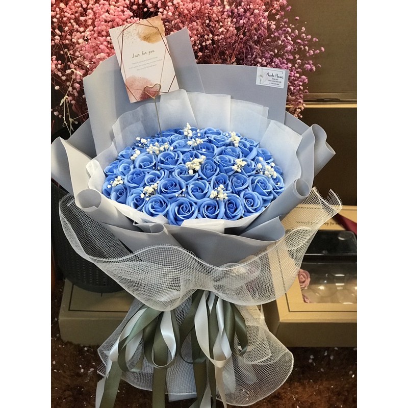 [Quà Valentine - Freeship] Bó hoa sáp VIP 50 bông phối baby sang chảnh. Thêm túi +30k