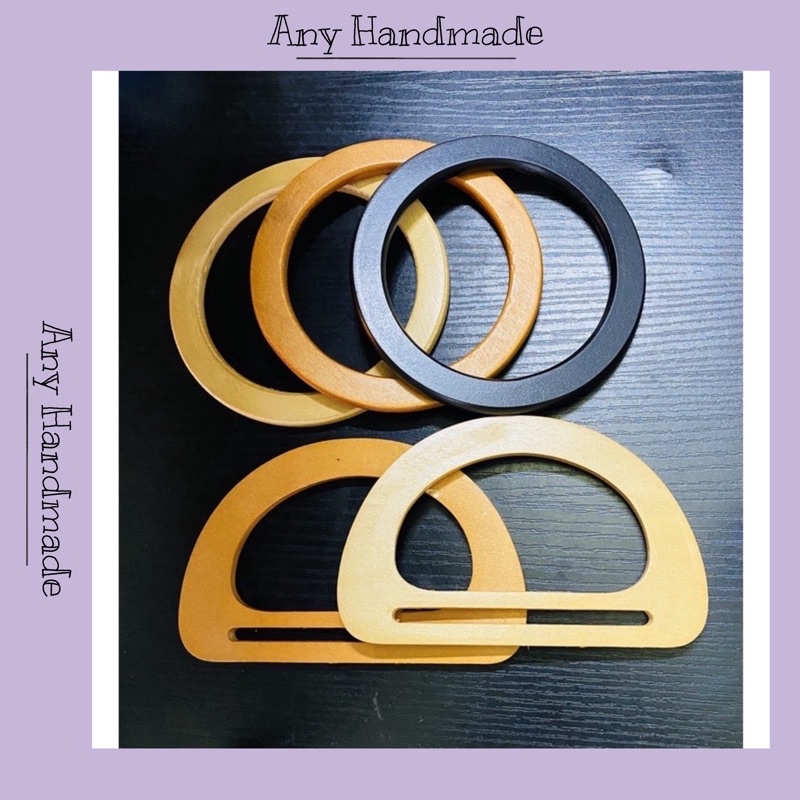 Quai gỗ dùng làm quai túi. Có 2 kiểu dáng như hình✅ Quai tròn: đường kính ngoài 13,5cm, đường kính trong 10,5cm, dày khoảng 0,9cm