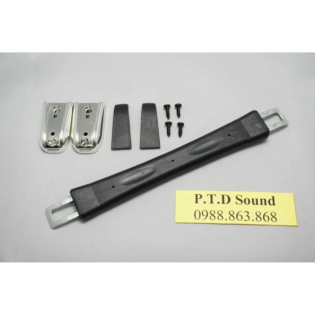 Quai xách loa cao su độ dài 23cmLàm từ cao su sần cho cảm giác sang trọng . 2 tai bằng sắt. 2 chốt giữ có 2 lỗ bắt vít cố định cứng cáp.
