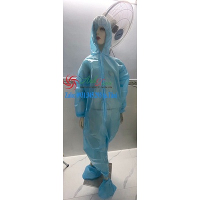 Set bộ bảo hộ gồm : áo, mũ, quần và bọc giày (mũ,áo may liền quần)