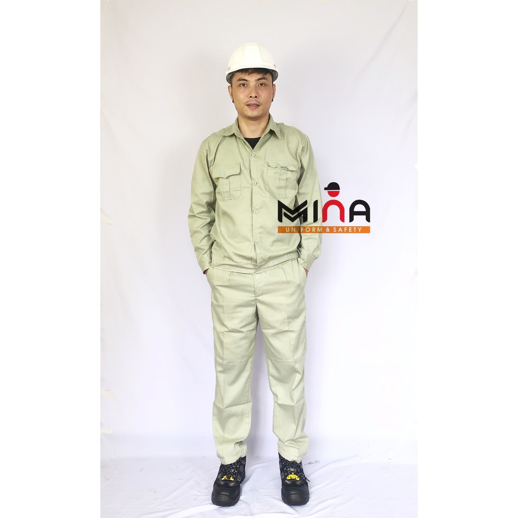 Giới thiệu Quần áo bảo hộ lao động - Bộ quần áo màu ghi công nhân - vải kaki v21