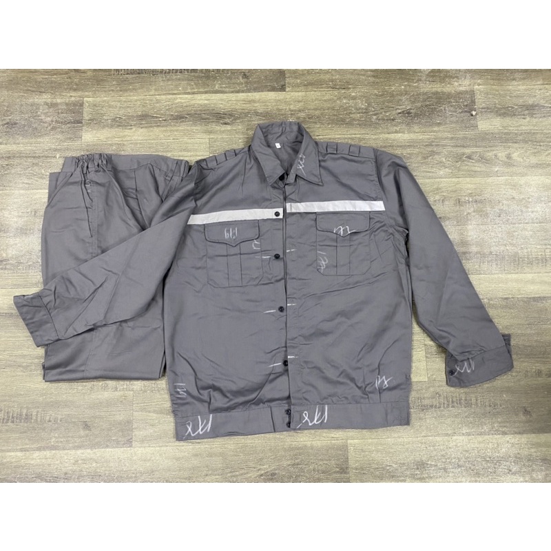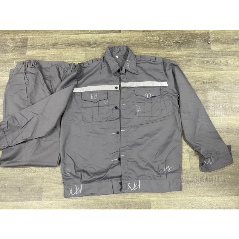 Bộ gồm áo dài tay, bo đai chun gấu áo, may đường phản quang ngang ngực và sau lưng. Quần có túi sau mông có nút gài, hai túi chéo hai bên.