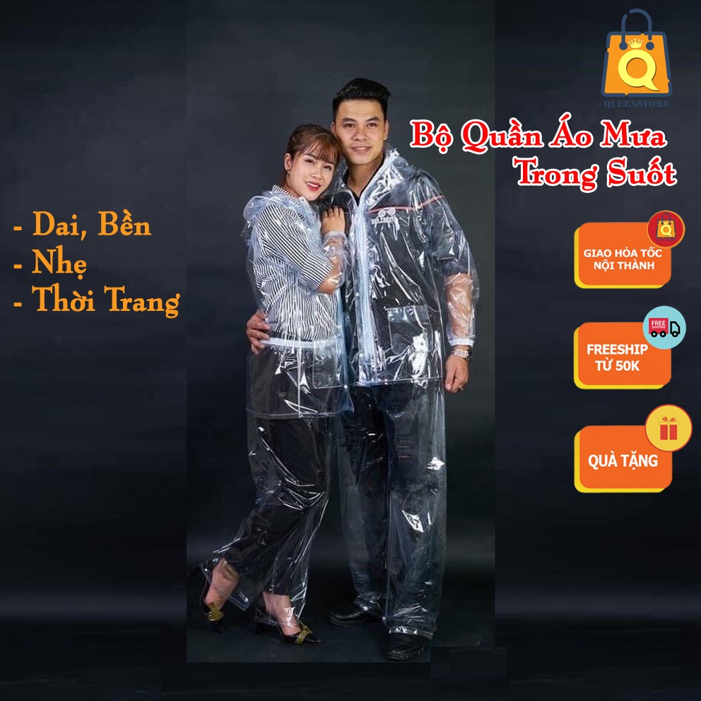 Bộ Quần Áo Mưa Trong Suốt Siêu Dai Nhẹ Bền Thời Trang Tiện Dụng Phong Cách Hiện Đại - QUEENS