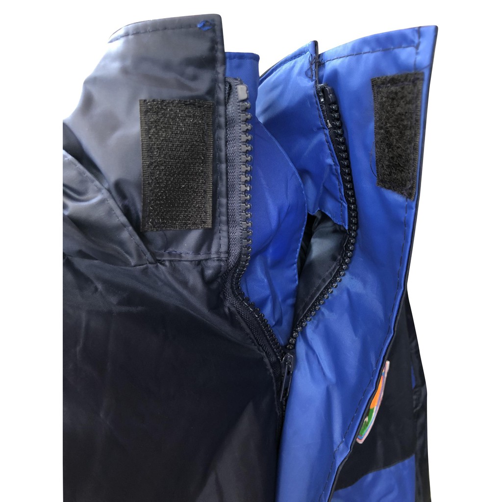 - Có 2 vạt áo che khóa kéo phía trước, các đường may được ép chống thấm nước tuyệt đối