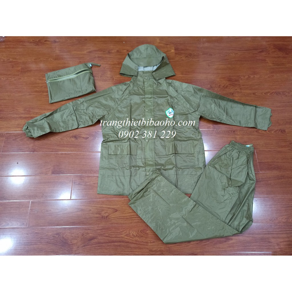 Bộ quần áo mưa màu xanh cỏ úa (vàng đồng) RANDO- Chất liệu: Vải dù tráng nhựa