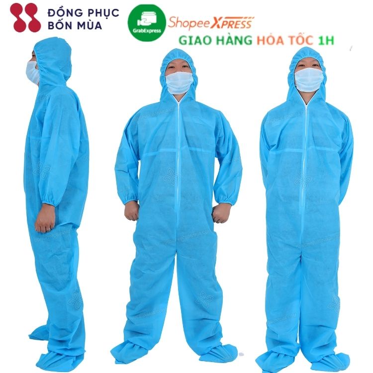 Bộ quần áo phòng dịch 4 món, quần áo bảo hộ y tế phòng chống dịch bệnh - Đồng Phục Bốn MùaSET BỘ bảo hộ 4 MÓN GỒM : ÁO,MŨ,QUẦN VÀ BỌC DÀY (MŨ,ÁO MAY LIỀN QUẦN)