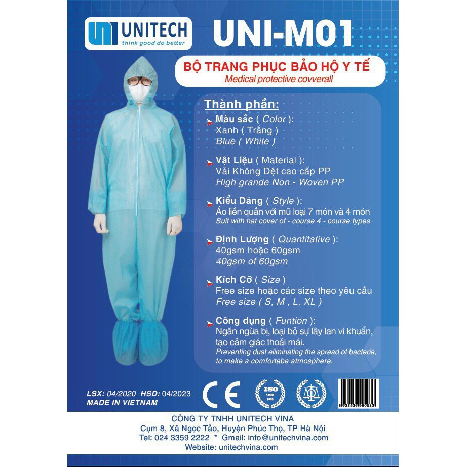 ● Bộ quân áo phòng dịch đã được kiểm định ISO chất lượng được dùng trong nhà máy, bệnh viện để phòng dịch bệ.nh, phun thuốc muỗi, cúm, đi máy bay....